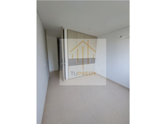 Apartamento 202 Sala comedor con balcon, cocina estilo americano, zona de ropas, hall de alcobas, un baño, tres alcobas, la principal con baño, closet y balcon, uso exclusivo parqueadero. Vista interior. Terminado, tiene agua.